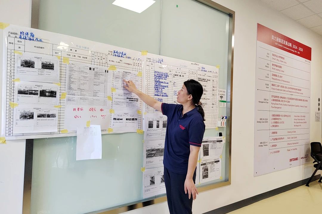 “工作改善邏輯”武裝隊伍:20余名骨干被分為3個工段改善小組,每組配備“改善四階段”工具卡,從分解作業(yè)到自問細(xì)節(jié),再到構(gòu)思新方法,最后實施新方法,將復(fù)雜的改善過程標(biāo)準(zhǔn)化、可視化,引導(dǎo)大家系統(tǒng)性地發(fā)現(xiàn)、分析、解決現(xiàn)場問題。