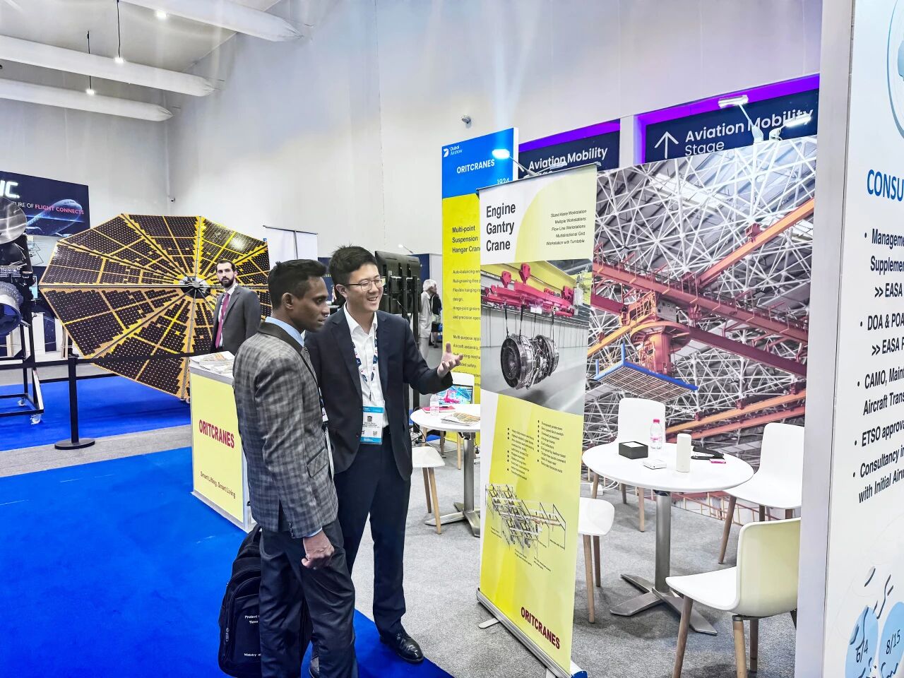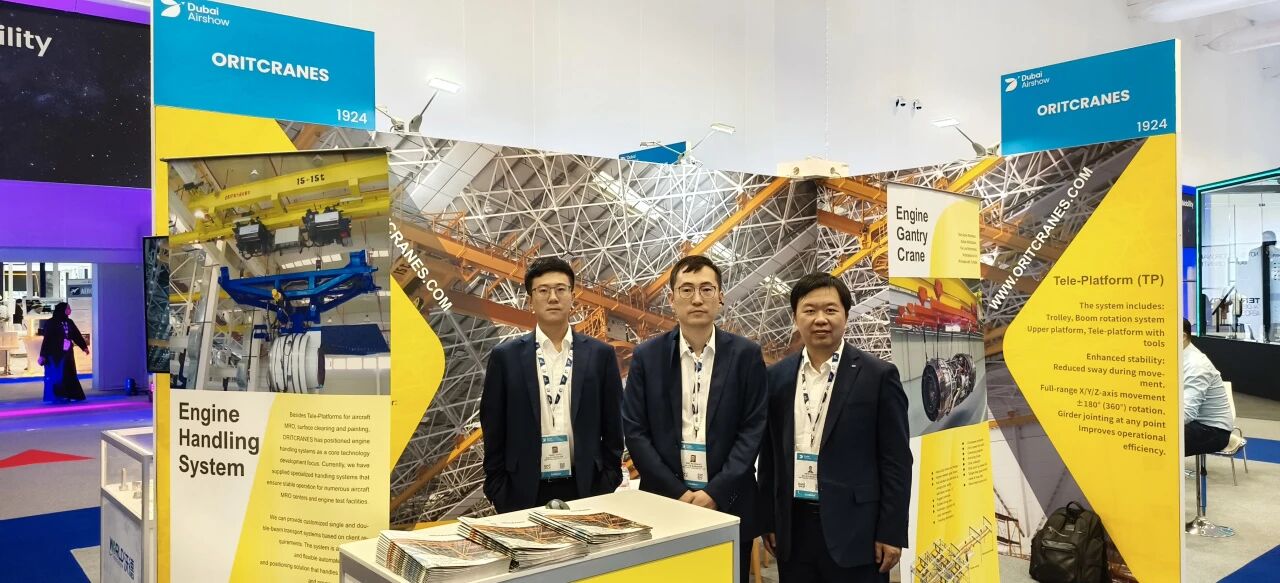 2025 年迪拜航空展(Dubai Airshow 2025)正在火熱進行中!奧力通團隊攜飛機多支點懸掛起重機、飛機升降平臺TP(Tele-Platform)、飛機發(fā)動機上部運輸系統(tǒng)和工位吊等重磅參展。